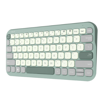 מקלדת בלוטות' עברית-אנגלית קומפקטית דקה אסוס Asus Marshmallow Keyboard KW100 BT Green Tea Latte Hebrew-English Compact Slim