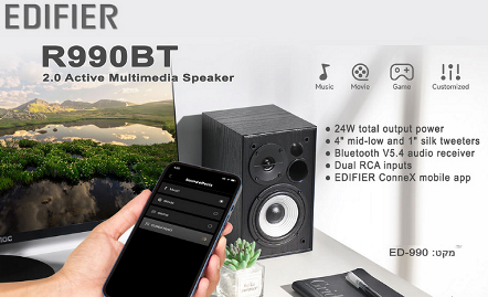 רמקולי מולטימדיה אקטיביים בלוטות' צבע שחור אדיפייר Edifier R990BT 2.0 Active Multimedia Speaker Bluetooth 24W RMS Black