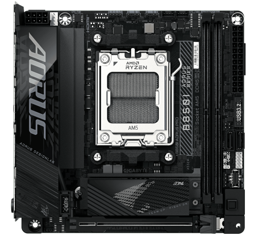 לוח-אם מיני למעבדי רייזן איי.אם.די ג'יגהבייט Gigabyte B850I AORUS PRO AM5 DDR5 Mini-ITX HDMI Type-C 2.5GbE WiFi 7 Bluetooth 5.4