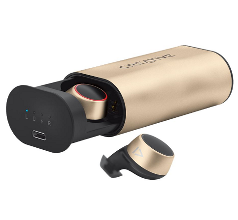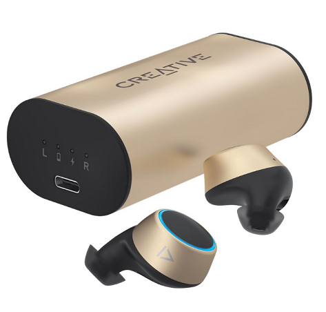 דגם אוזניות אלחוטיות בלוטות IE חסינות זיעה צבע זהב נרתיק טעינה פרמיום קריאטיב Creative Outlier Gold True Wireless Sweatproof In-Ear Headphones with 39 Hour Battery Life and Software Super X-Fi