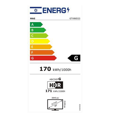 מסך טלוויזיה חכמה מערכת הפעלה גוגל 86 אינץ' כולל ממיר עידן פלוס מובנה מאג MAG GTV86D23 86 Inch 4K 3840x2160 60Hz WiFI Ethernet RJ45 100Mb 3xHDMI 2xUSB Bluetooth 5.1