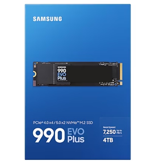 דיסק פנימי כונן אחסון פלאש מהיר סמסונג Samsung MZ-V9S4T0BW 990 EVO Plus 4TB PCIe 4.0x4 or 5.0x2 NVME M.2 SSD V-NAND Read 7250MB/s Write 6300MB/s