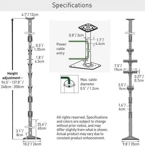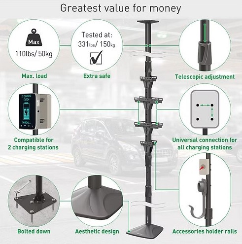 עמוד טלסקופי רצפה-תקרה 350 ס''מ לתחנת טעינת רכב חשמלי ברקן Barkan EV350FC 350cm Floor-to-Ceiling Telescopic Pole for Electric Vehicle Charging Station