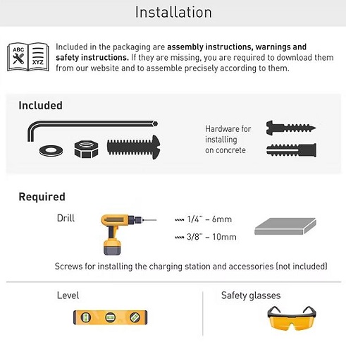 העמוד כולל דיבלים וברגים איכותיים של ברקן להתקנה על משטח בטון, וניתן אף להתקין עליו שתי עמדות טעינה