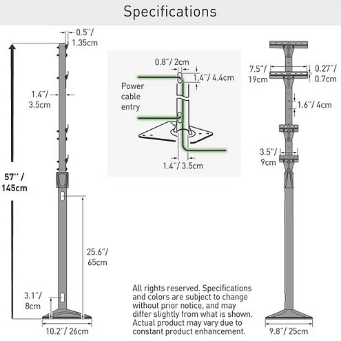 לקבלת מראה נקי ואסתטי, כבל הזנת החשמל מוסתר בעמוד ונכנס אליו מעל הקרקע (בפתח בצד) או נכנס בצורה