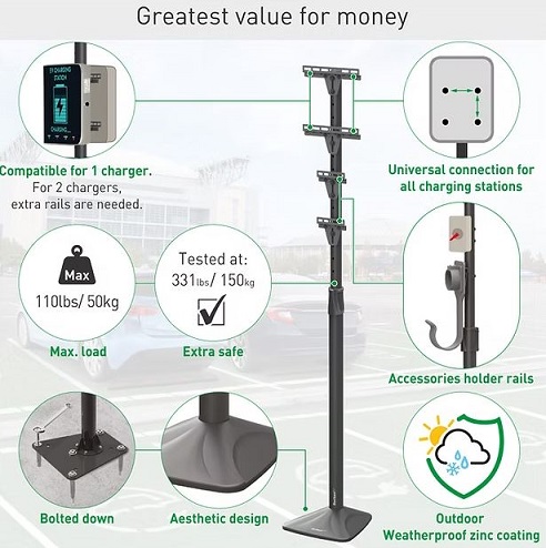 מיועד להתקנה מחוץ לבית או במגרש חנייה/ חניון כאשר אין אפשרות להתקין את עמדת הטעינה על קיר.