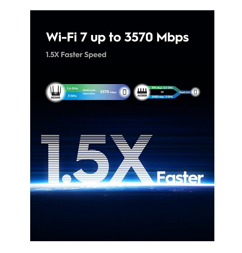 נתב Wi-Fi 7 עם פס כפול עם מהירות מצטברת של 3.6Gbps וחמש יציאות Gigabit,