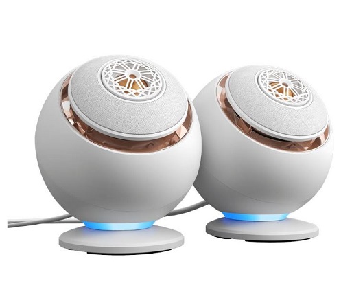 רמקולים רמקולים פרימיום 2.0 USB-C עם דרייברים קואקסיאליים בלוטות' לבן כולל תאורה קראייטיב Creative Pebble-Nova White Premium 2.0 USB-C Speakers with Coaxial Drivers 50W RMS RGB