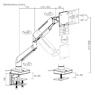 עובי שולחן עבודה מומלץ - מהדק: 10~85 מ"מ, לולאה: 10~48 מ"מ