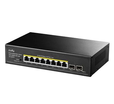 מתג לא מנוהל 8 כניסות כולל מתח לכל כניסה 2x SFP 1.25G קודי Cudy GS1008PS2 1.0 8-Port Gigabit PoE+ Switch with 2 Gigabit SFP Slots 120W Power Supply