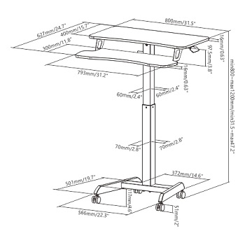 (31.5 אינץ' ~ 47.2 אינץ'), כך שתוכלו לבחור לשבת או לעמוד בזמן ביצוע משימות או הצגת מצגת.