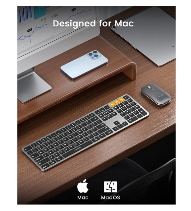 סט מקלדת ועכבר אלחוטיים בלוטות' עברית-אנגלית פרוטוארק ProtoArc KM100-A Backlit Bluetooth Keyboard and Mouse Combo for Mac Hebrew-English Space Gray