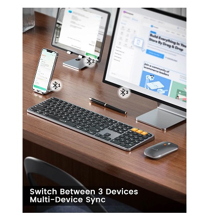 עם שלושה ערוצי Bluetooth, מקלדת ועכבר Bluetooth יכולים להתחבר בקלות לעד שלושה מכשירים שונים בו