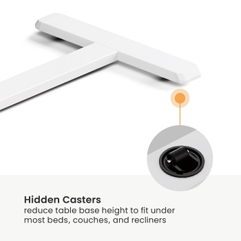 גלגלים נסתרים מפחיתים את גובה הבסיס, ומאפשרים לשולחן להתאים בצורה חלקה מתחת לרוב המיטות,