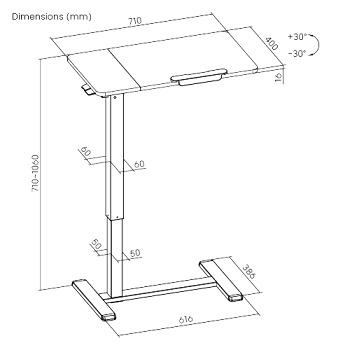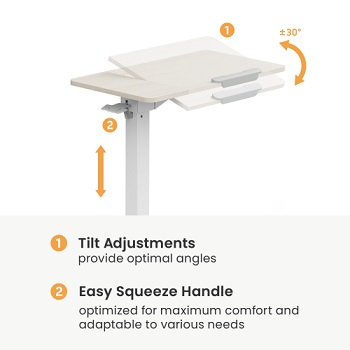 שולחן סטנד אישי לבן הידראולי למחשב נייד ישיבה עמידה עם גלגלים נסתרים כולל כיוון גובה לומי Lumi FMT02-03 White Mobile Height Adjustable Side Table with Tiltable Tabletop Effortless Versatility, Seamless Comfort Size 710x400x710-1060mm