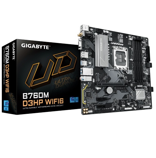 לוח-אם ג'יגהבייט למעבדי אינטל דור 12 עד 14 ג'יגהבייט לוח אם אינטל GIGABYTE B760M D3HP WIFI6 mATX DP HDMI VGA LGA1700