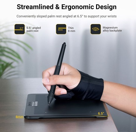 המסייעות בהגדרת אזור הציור הפעיל. טביעת הרגל הקטנה יותר של טאבלט זה אופטימלית ליצירת פריסות גרפיות,