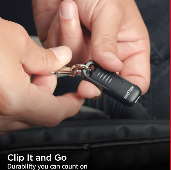 השתמש בחור נוח למחזיק המפתחות כדי להצמיד בקלות את כונן הבזק SanDisk Ultra Slider USB Type-C™ למפתחות, לתיק ועוד, כך שהוא ילך לאן שאתה הולך.