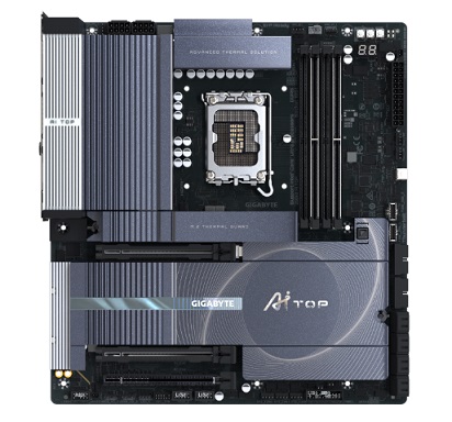 לוח-אם לבינה מלאכותית למעבדי אינטל אולטרה ג'יגהבייט Gigabyte Z890 AI TOP LGA1851 E-ATX DDR5 2x10GbE USB-C PCIE 5.0 NVMe Gen5 2xThunderbolt WiFi7 Bluetooth 5.4