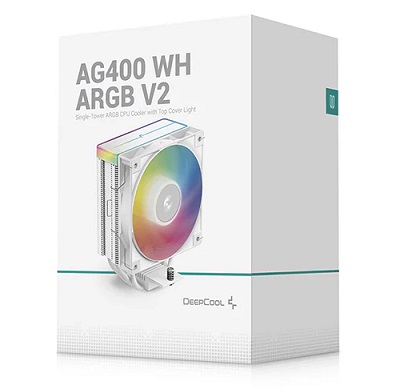 ה- DeepCool AG400 WH ARGB V2 הוא מקרר מעבד לבן לחלוטין בעל מגדל יחיד, המתמקד ביעילות ביצועים גבוהה, ומתגאה בארבעה צינורות חום ארוזים במגדל גוף הקירור הצפוף לפיזור חום אופטימלי, בשילוב עם מאוורר