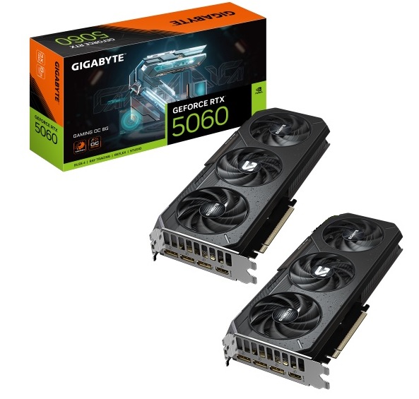 2 כרטיסי מסך לגיימרים ג'יגהבייט Gigabyte GV-N5060GAMING OC-8GD GeForce RTX 5060 Gaming OC 8GB GDDR7 128bit PCIe 5.0 3xDP HDMI