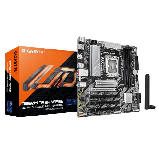 לוח-אם למעבדי אינטל אולטרה ג'יגהבייט Gigabyte B860M DS3H WIFI6E Micro-ATX LGA 1851 PCIe 5.0 HDMI 2xDP WiFi 6E Bluetooth