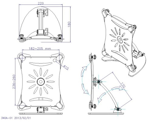 זרוע תעשייתית שולחנית איכותית לאייפד טאבלט עם מעמד בסיס שולחני GoldTop Tech Arm GT340AB Mount