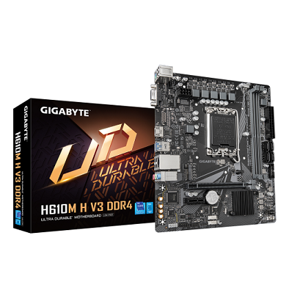 לוח-אם למעבדי אינטל דור 12/13/14 ג'יגהבייט Gigabyte H610M H V3 DDR4 mATX LGA 1700 PS/2 VGA HDMI GbE
