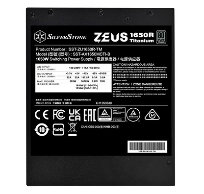 ספק-כוח למחשב נייח מודולרי מלא סילברסטון SilverStone SST-ZU1650R-TM ZEUS 1650R Titanium 80 PLUS Titanium 1650W ATX 3.1 and PCIe 5 Fully Modular ATX Power Supply