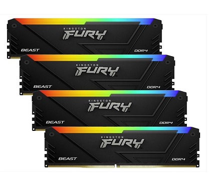 קיט זיכרונות למחשב נייח כולל צלעות קירור ותאורה שחור קינגסטון Kingston KF432C16BB2AK4/128 128GB (32GB 4G x 64-Bit x 4 pcs.) DDR4-3200 CL16 288-Pin DIMM Kit Intel XMP RGB Black