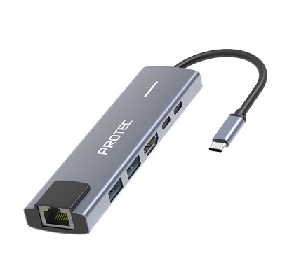 דגם: רכזת 6 ב- 1 כולל יציאת רשת ג'יגה ותצוגה פרוטק Protec DM286 6in1 USB-C to HDTV HUB 4K