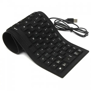 מקלדת סיליקון גמישה מתקפלת מתאימה לנסיעות בצבע שחור חיבור USB עברית-אנגלית Silicone keyboard Black USB Connection Hebrew-English