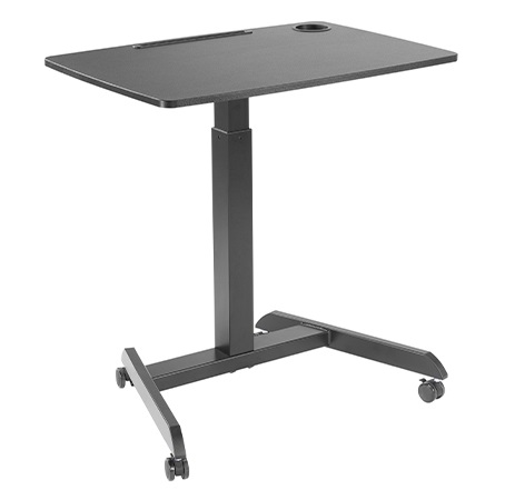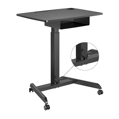 שולחן למחשב נייד ישיבה עמידה מתכוונן בגובה עם מדף להנחת פריטים כוונון על ידי רגלית משטח 560x800 מ''מ מדף 260x400 מ''מ מחזיק כוסות וחריץ לטאבלט נשיאה עד 8 קילו שחור לומי Lumi FWS07-4 Black Height Adjustable Mobile Workstation With Drawer A Mobile Stand for Presentations or an Active Work Style
