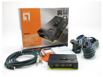 קופסת מיתוג 2 ערוצים כולל אודיו Level One KVM-0221 VGA USB Audio KVM