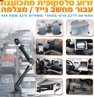 זרוע מתקפלת לחיבור מסך או מחשב נייד LAPTOP ברכב/כסא/שולחן/קיר ראש כדורי 360 מעלות כולל נעילה ניתנת