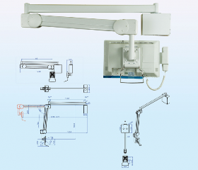 זרוע תעשייתית מאלומיניום ופלדה הידראולית רפואית ארוכה חיבור לקיר כולל כיוון גובה צידוד והטיה 1600mm למסך על קיר עם 3 מפרקים עד משקל 8 ק''ג GoldTop Tech Arm GT981CA LCD Mount