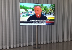 עמוד נירוסטה רצפתי מעוצב ומרהיב למסכי טלוויזיה תואם למסכים 32 עד 75 אינץ',