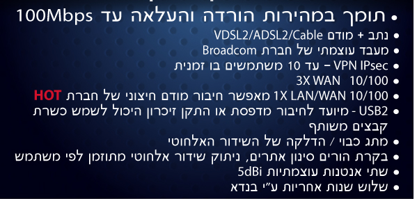 *10/100 1XLAN/WAN מאפשר חיבור מודם חיצוני של חברת HOT