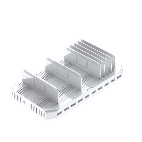דגם עמדת טעינה לטלפונים ניידים סמארטפון וטאבלטים חזקה ומהירה כולל ספק כוח יוניטק Unitek 10 Port 2.4A 96W