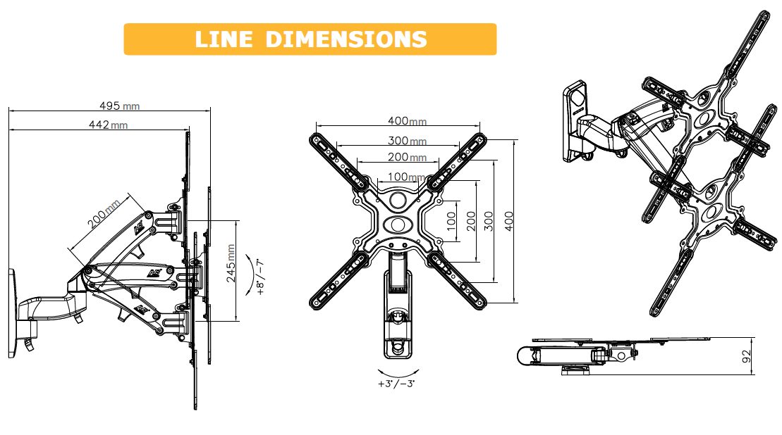 F450 הוא מיצב קיר מלא תנועה LED, טלוויזיה LCD הר.