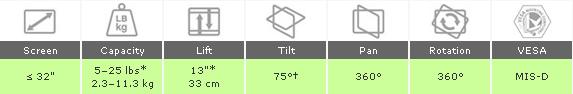 מרחיב LCD עד 25 אינץ'(64 ס"מ),לדחוף את התצוגה שלך מהדרך כאשר אינו בשימוש.
