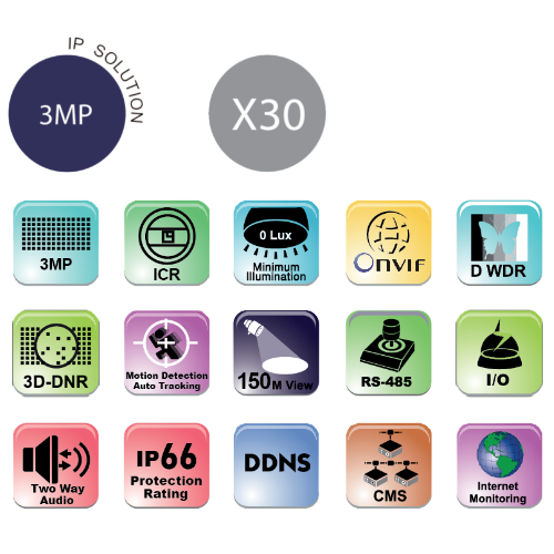מצלמת דום IP ממונעת PTZ חיצונית Provision CMOS Z-30IP-3 3.0Mega Pixel x30 Optical Zoom 4.3-129mm 150m