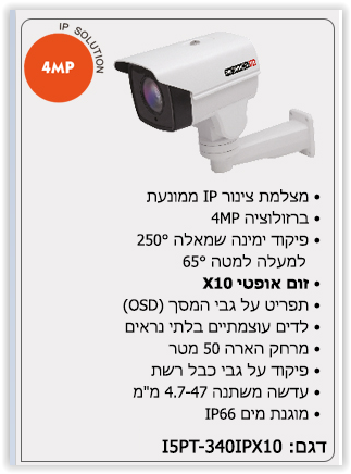מצלמת אבטחה ממונעת פרוויז'ן IP רשת זום אופטי כפול 10 יום ולילה אינפרא Provision CMOS I5PT-340IPX10 (2688x1520) 4MegaPixel 4.7-47mm 50M Real Time IP Camera