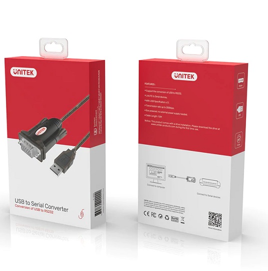 כבל יו אס בי מתאם סריאלי יוניטק ל- Unitek Y-108 USB to Serial Com Cable Chipset FTDI RS232