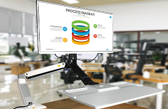 המסך והתצוגה הניתנים לשינוי גובה ומקלדת נע במהירות ובקלות בעת ובעונה אחת לגובה המתאים,