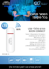 דגם מודם סלולארי המתאים לכול ספקיות הסלולר, חיבור אלחוטי לעד כ-8 משתמשים BOON CONNECT USB Dongle