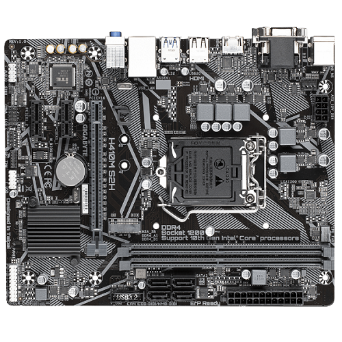 לוח אם ג'יגהבייט למעבדי אינטל דור 10 Gigabyte H410M S2H V3 mATX VGA DVI HDMI LGA 1200 DDR4