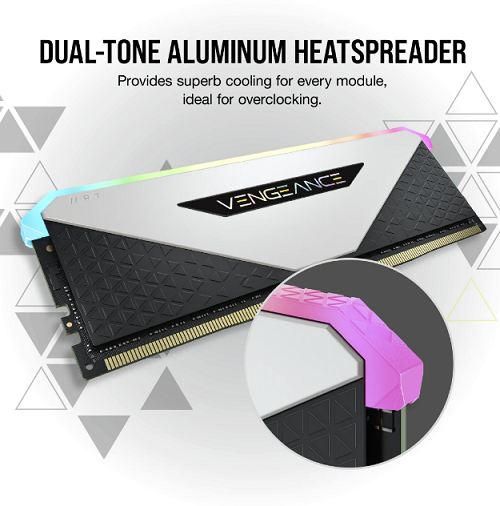קיט זכרון לבן למחשב נייח כולל תאורה קורסייר Corsair CMN16GX4M2Z3600C18W Vengeance RGB RT 16GB 2x8GB DDR4 DRAM 3600MHz C18 Intel XMP 2.0 and AMD Memory Kit White