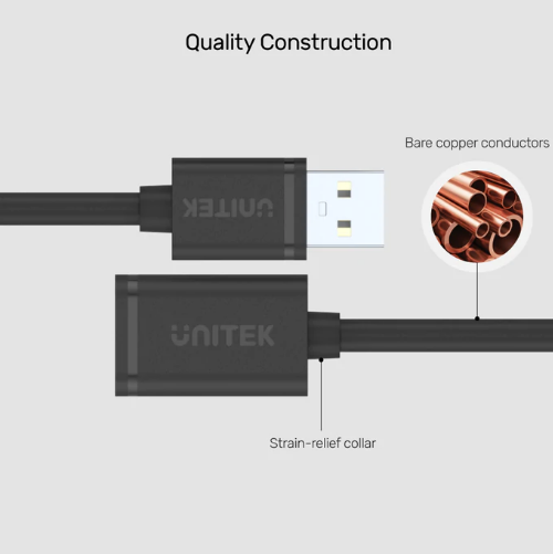 כבל מאריך יו אס בי 2.0 אקטיבי 5 מטר זכר נקבה יוניטק Unitek Y-C418GBK USB 2.0 Extension Cable 5M