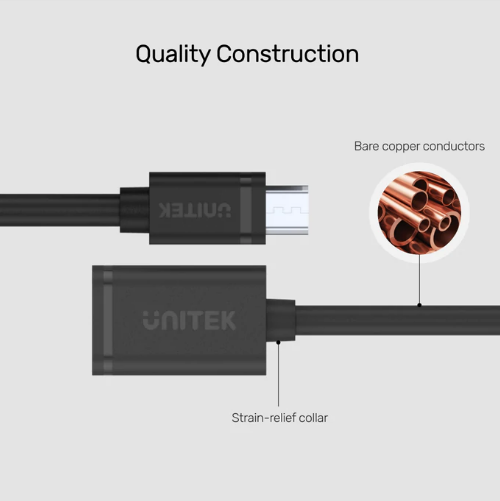 כבל מתאם מיקרו יו אס בי ל יו אס בי איי 0.2 מטר זכר נקבה יוניטק Unitek Y-C438GBK Micro USB to USB-A OTG Adapter (USB 2.0) Cable 0.2M